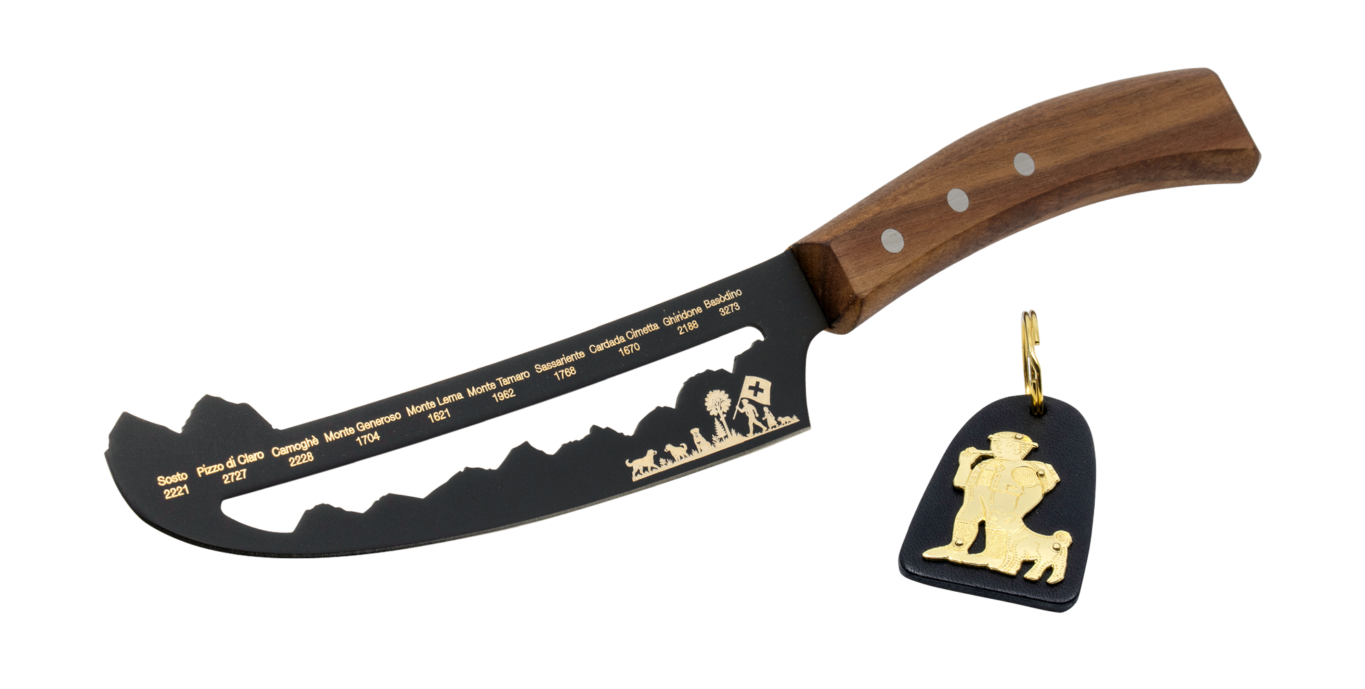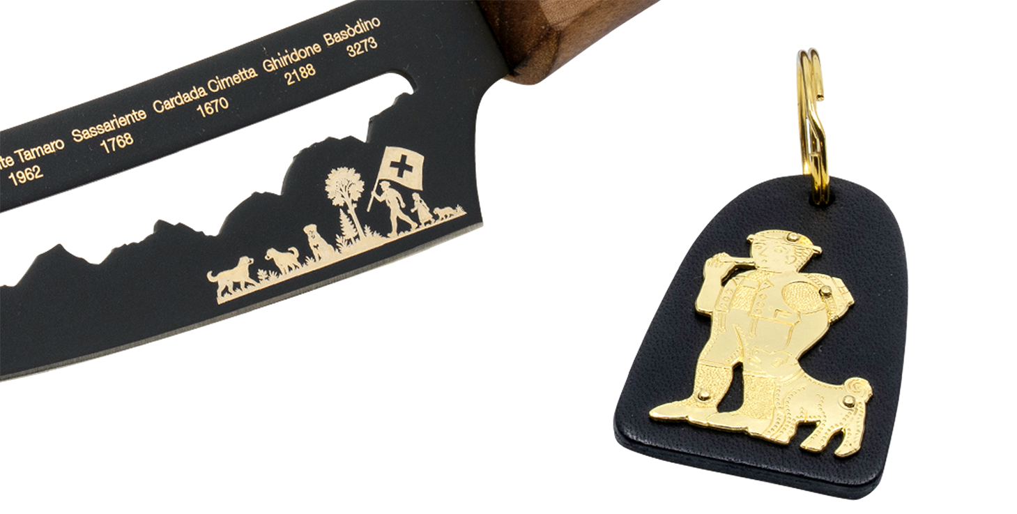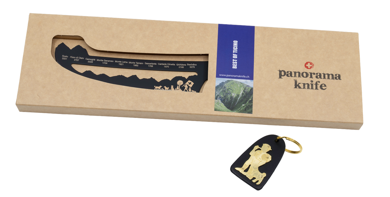 For this special gift set, we have once again combined two regional gems: an Appenzell keychain made from durable, sustainably produced leather, featuring a finely crafted brass ornament depicting the traditional alpine herdsman – paired with a cheese knife showcasing a new panoramic design and delicate laser engraving. Together, they form a stylish and practical duo for everyone who appreciates traditional Swiss quality.