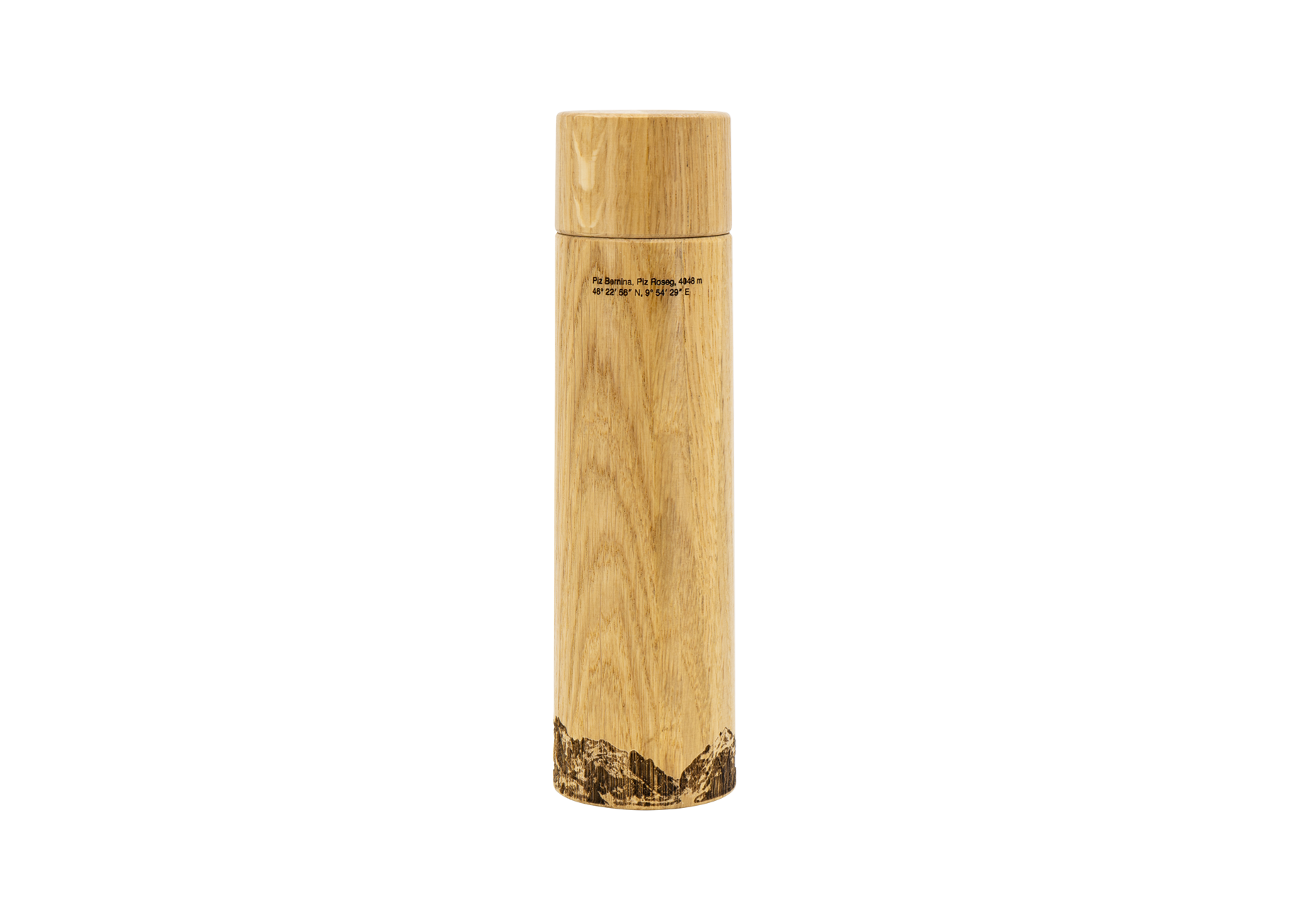 Avec une magnifique gravure au laser du seul sommet de 4000 mètres des Alpes orientales, le Piz Bernina et son voisin : le Piz Roseg.